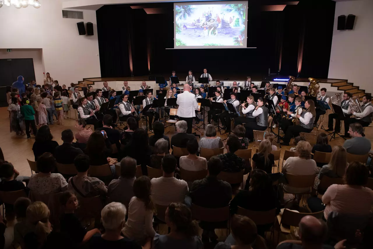 "Das große Kinderkonzert" ist ein Gemeinschaftsprojekt der Mönsterli-Band, Jungmusik und Harmoniemusik Triesen. Unter dem Motto "Into tje Movies" wurden durch diverse Stücke aus der Disney-Welt der musikalische Zauber auf das Publikum übertragen, das darüber hinaus von verkleideten Animateur*innen zum Tanzen, Klatschen und Mitmachen motiviert wurden.